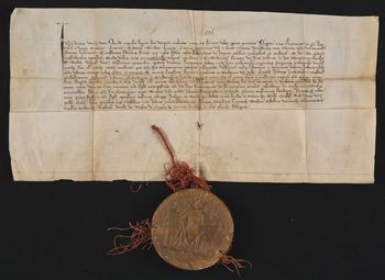 Na odwrocie: streszczenie [XVII w.]; "Casimirum" [?]; "No 2do"; "Fasciculi 1 sub litera gemina... Ł A" [przekreślone]; "Ad summarium bonorum Tursko inductum"; "Iuris teuthonici in Thursko...remissio"; "S"; "I"; "1353 Inv. 31".