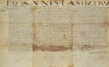 Pieczęci króla Jana Kazimierza brak, pozostały dziurki na sznurek do pieczęci.