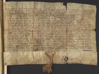 Pieczęci królowej Elżbiety Łokietkówny brak, pozostał po niej jedwabny sznurek.