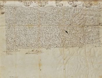 Pieczęci papieża Klemensa XIV brak, pozostały dziurki po sznurze od pieczęci.