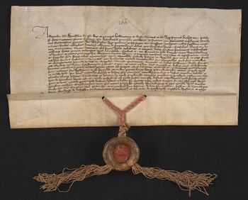 Pieczęć mniejsza księcia Witolda zawieszona na czerwonym jedwabnym sznurku [trochę wykruszona i zatarta] (M. Gumowski, Pieczęcie książąt litewskich s. 719-720 nr d tabl.VI il.45; Wł. Semkowicz, Sfragistyka Witolda [w:] Wiadomości Numizm.-Arch. T.XIII (1930) s. 73 il.4; D. Otwinowska [w:] Zbiory pieczęci w Polsce s. 167 fot.7; MNK odl.1421. Inna piecz.: 285 Perg.).