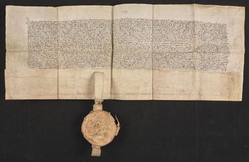 Pieczęć majestatyczna księcia Witolda [zatarta] z contrasigillum, zawieszona na pergaminowym pasku.