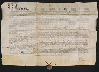Dokument sporządzony przez N. notariusza i pisarza biskupów spoletańskiego i luceńskiego, nuncjuszów apostolskich.