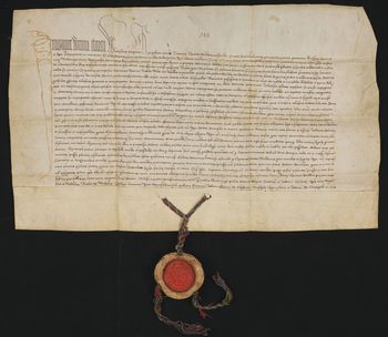 Pieczęć króla Władysława Jagiełły zawieszona na różnokolorowym jedwabnym sznurku (M. Gumowski, Pieczęcie królów, nr 14).