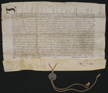 Bulla soboru bazylejskiego zawieszona na konopnym sznurku.