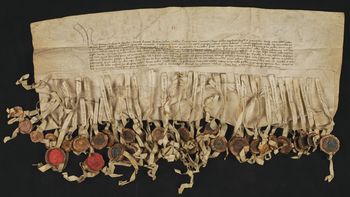 Z 44 pieczęci zawieszonych na pergaminowych paskach pozostało: 25 całych pieczęci, dziewięć pieczęci uszkodzonych, sześć pasków pergaminowych i nacięcia na cztery paski pergaminowe.