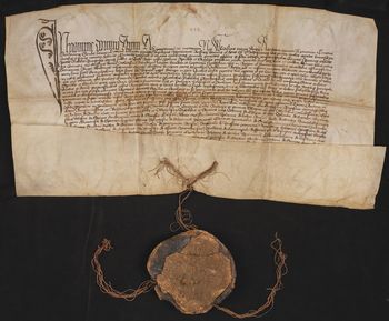 Na odwrocie: 3 streszczenia [XV-XVII w.]; "1438"; "Vniuersal. Reg. No 15"; "De Tarnow"; "De Tharnow".