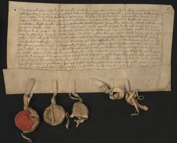 Z sześciu pieczęci zawieszonych na pergaminowych paskach pozostały: pieczęć księcia oświęcimskiego i toszeckiego Przemysła [uszkodzona]; dwie pieczęcie wyłupane, trzy paski pergaminowe.