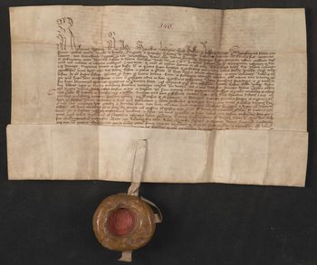 Pieczęć średnia króla Kazimierza Jagiellończyka zawieszona na pasku pergaminowym (M. Gumowski, Pieczęcie królów, nr 28).
