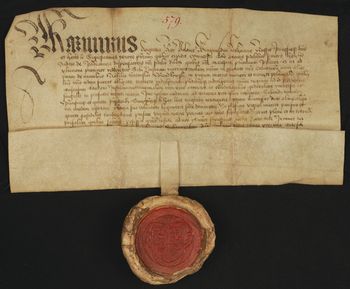 Pieczęć króla Kazimierza Jagiellończyka zawieszona na pergaminowym pasku (M. Gumowski, Pieczęcie królów, nr 27).
