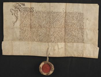 Pieczęć króla Kazimierza Jagiellończyka zawieszona na pergaminowym pasku (M. Gumowski, Pieczęcie królów, nr 27).