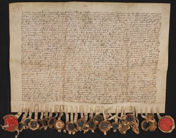 Z 28 pieczęci zawieszonych na paskach pergaminowych pozostało: pieczęć księcia Wiktoryna [uszkodzona]; 26 pieczęci herbowych świadków, w tym pieć pieczęci nieuszkodzonych; jeden pasek pergaminowy.