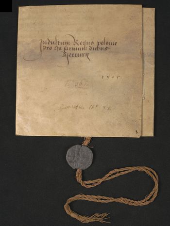 Na odwrocie: 2 streszczenia [XVI w.]; "Regestrata apud me Sigismundum"; "No 36-to"; "Pontific., No 52".
