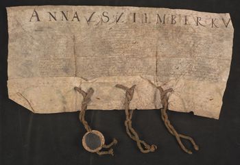 Z trzech pieczęci zawieszonych na sznurkach pozostała jedna, Anny ze Sztemberku Ostrogskiej, wyciśnięta w czarnym wosku.