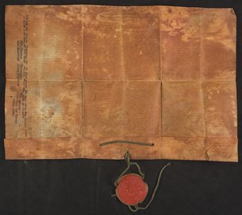 Pieczęć króla Władysława IV zawieszona na jedwabnym zielonym sznurku.