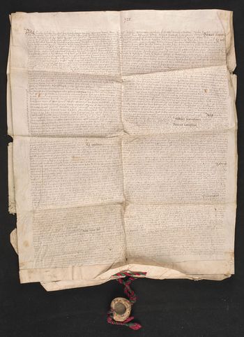 Dokument składa się z dwóch kart pergaminowych zapisanych po obu stronach i połączonych sznurkiem od pieczęci.