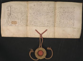 Pieczęć króla Zygmunta Starego zawieszona na jedwabnym sznurku (Gumowski, Pieczęcie królów nr 48).