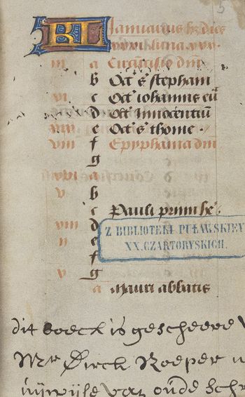 Rękopis nabyty dla Izabeli Czartoryskiej przez gen. Michała Sokolnickiego w Louvain w r. 1810.