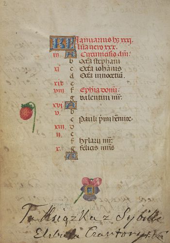 Rękopis niesłusznie łączony z Janem Kazimierzem Wazą - w 17 w. należał do Polaka imieniem Kazimierz. Na s. 1 Ex libris Alexandri Hilarii i Ex libris Claudii Theodori de Lespinasse. W r. 1739 Krzysztof Fryderyk Manteufell-Kiełpiński, opat benedyktynów w Sieciechowie ofiarował kodeks Jerzemu Wawrzyńcowi Pirchowi. Następni właściciele to Józef Andrzej Załuski i Tadeusz Czacki, od którego Godzinki przeszły w ręce w r. 1798 r. Ludwika Kropińskiego. Czacki wywiózł rękopis z Petersburga około 1797 r. Od r. 1805 eksponowany w Świątyni Sybilli. Biblioteka Puławska Świątynia Sybilli.