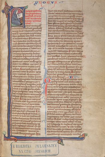Tyt. równoległy: [Biblia (bez Dziejów Apostolskich) z prologami św. Hieronima; słownik imion hebrajskich Stefana Langtona].