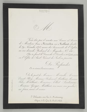 Zawiadomienie o pogrzebie na cmentarzu Montmorency.