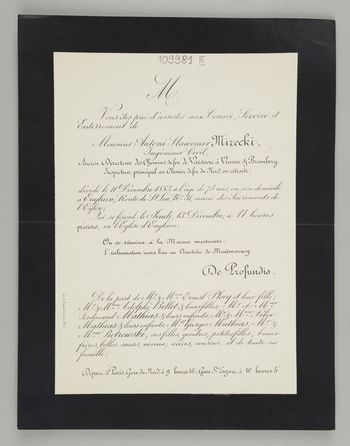 Zawiadomienie o pogrzebie na cmentarzu Montmorency.