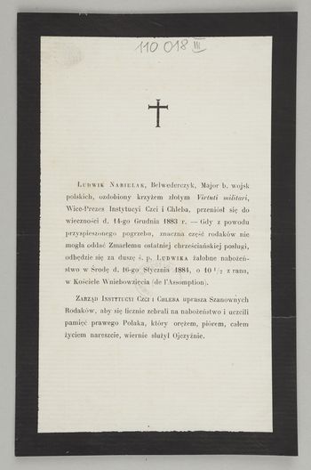 Zawiadomienie o nabożeństwie w rocznicę śmierci.