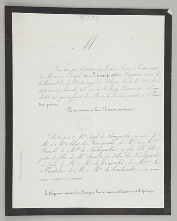 Zawiadomienie o pogrzebie na cmentarzu Raincy.
