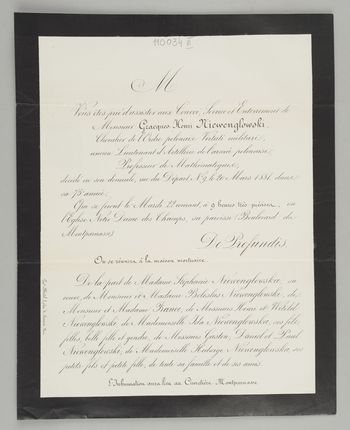 Zawiadomienie o pogrzebie na cmentarzu Montparnasse.