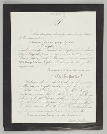 Zawiadomienie o pogrzebie na cmentarzu Montmartre.