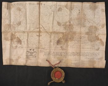 Pieczęć Pawła biskupa wileńskiego zawieszona na jedwabnym czerwonym [niegdyś] sznurku.