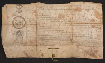 Pieczęci króla Jana Kazimierza brak, pozostał po niej zielony sznurek.