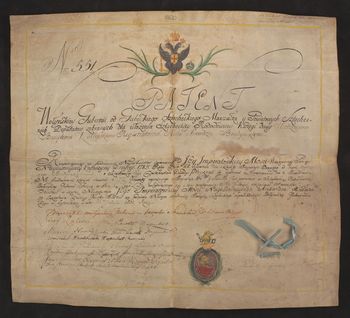 Pieczęci brak, pozostał kawałek jedwabnej niebieskiej wstążki przeciągniętej u dołu pergaminu po prawej stronie.