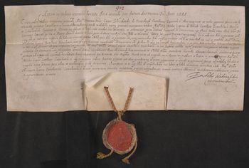 Dokument jest uwierzytelnionym wypisem z akt ławniczych krakowskich z XVI/XVII w.; ma nacięcia jakby miało być przywieszonych więcej pieczęci niż jedna; zakładka jest częściowo obcięta.
