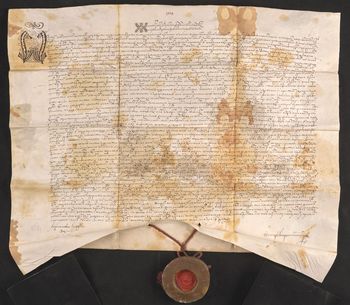Pieczęć króla Zygmunta Augusta zawieszona na jedwabnym czerwonym sznurku.