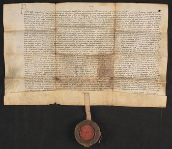 Pieczęć arcybiskupa Piotra Gamrata zawieszona na pergaminowym pasku.