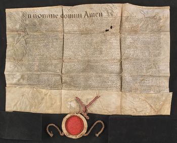 Pieczęć króla Zygmunta Starego zawieszona na jedwabnym czerwonym sznurku.
