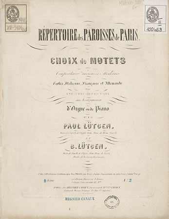 Na dolnej okładce ; Catalogue des Paroises de Paris publié par Régnier-Canaux.