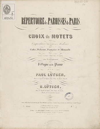 (Répertoire des Paroisses de Paris : choix de motets des compositeurs anciens et modernes ... pour une et plusieurs voix avec acc.t d'orgue ou de piano ; 3.e Série, Nr 6)