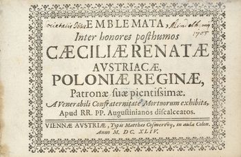Do druku dodano 41 rysunkowych emblematów (pierwsze 4 kolorowe) ilustrujących oprawę egzekwii, które odbyły się w wiedeńskim kościele św. Augustyna.