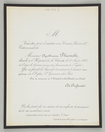Zawiadomienie o pogrzebie na cmentarzu St. Ouen.