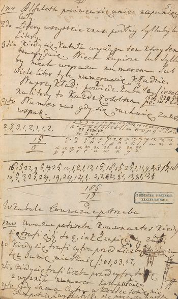 Materiały historyczne, korespondencja oraz notatki i pisma Elżbiety z Lubomirskich Sieniawskiej z lat 1696-1725. - Oryginały - 1696-1725. - 60 stron + 1 karta ochronna : Rysunki na stronie 7, 11b, 12 ; 36 x 21 cm i mniej.