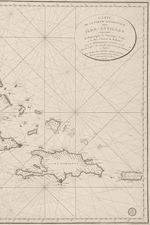 W lewym dolnym rogu: "Nota Les Chiffres de Sondes indiquent des Brasses Françaises. Les Lettres jointes à ces chiffres indiquent la nature du Fond. C signifie Coquilles, f Fange, g Gravier, r Roche, s Sable, v Vaze, b blanc, f fin, g gros, n noir, t tacheté, v vert."