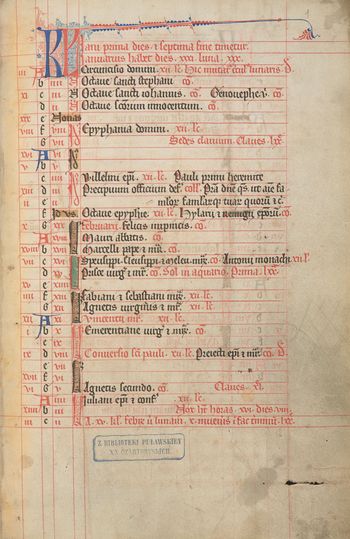 „Missale” z kalendarzem. - Francja północna, [początek 14 w.]. - 532 strony + II karty ochronne : pergamin, iluminacje ; 27,5 x 18 cm.