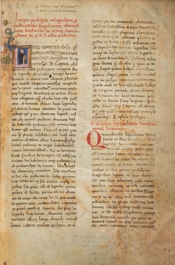 2. s. 69-124: Petrus Ransanus (Ranzano) Siculus OP, Legenda s. Vincentii Ferrerii. Lib. 1-3 Incipit prefacio ad reuerendissimum in Christo patrem magistrum Marcialem Auribelli Auinionensem, quondam generalem magistrum ordinis Predicatorum fratris Petri Ransani Panormitani eiusdem ordinis nunc episcopi Luceriensis Apulie in librum de vita sanctissimi Vincencii confessoris eximii prefati ordinis. – [Prologus] Si maiorum nostrorum, qui post nostrum inclitum ducem Dominicum ordinis Predicatorum gubernacionem habuerunt... [Textus] Vincencius a vincendo quodam diuino presagio nomen sortitus est... [s. 72] Beatus Vincencius ex Valencia clarissima Yspaniarum ciuitate et ex antiqua honestaque Ferrariorum familia ...X... [s. 124] obiit autem Nonis Aprilis sepultusque est in maiori ecclesia Venetensi anno Domini MoCCCCoXIXo et quemadmodum dum viueret multis miraculis claruit... Ad quorum miraculorum veneracionem sequentem librum distinximus... migrauit cum Christo victurus in secula sec. Amen. Explicit liber tercius de vita beati Vincencii... Quartus feliciter incipit in quo narrantur miracula que... tam in Britania quam in aliis mundi partibus facta sunt.