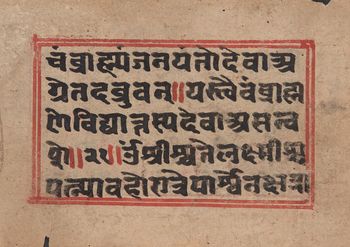 Rękopis sanskrycki. - [około 1701-1800]. - 308 stron ; Tekst bez początku, w ramkach czarnym i czerwonym atramentem, tekst rubrykowany. 5 wierszy na stronie ; 8 x 14 cm.