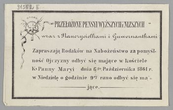Zaproszenie na nabożeństwo patriotyczne w dniu 6 X 1861 r.