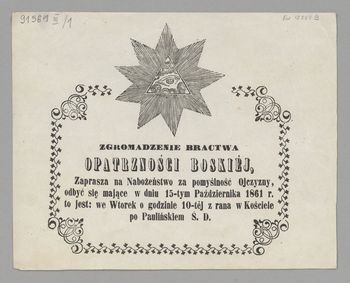 Zaproszenie na nabożeństwo patriotyczne w kościele po Paulińskim Ś.D, w dniu 15 X 1861.