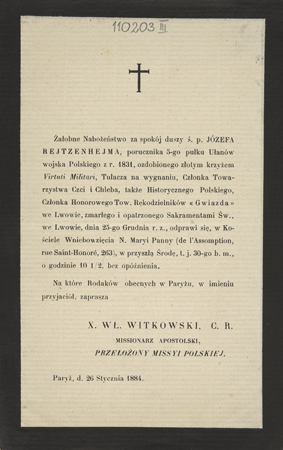 Zawiadomienie o nabożeństwie rocznicowym w kościele de l'Assomption w Paryżu.