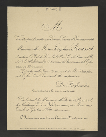 Zawiadomienie o pogrzebie na cmentarzu Montparnasse.